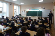 Скоро зимние каникулы. Государственный инспектор ОТН и РАС ГИБДД по г. Казани Зарипов Л.Н. напомнил учащимся 3Б, 4Б и 4В классов о правилах дорожного движения.