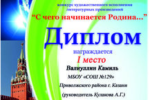 1 место - Валиуллин Камиль 9Л, учитель Кулакова А.Г.,