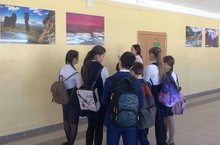 По инициативе мэра Казани Ильсура Метшина во всех 163 школах города проходит постоянно действующая ФОТОВЫСТАВКА «МОЯ РОССИЯ». На фотографиях запечатлены 20 удивительных по красоте и уникальности мест России. Это природные памятники и достопримечательности, раскрывающие огромную географию страны с ее многообразием климатических зон и природных ресурсов. Экскурсоводы - учащиеся 9В класса. Организатор экскурсий - учитель географии Харитонова Р.И.