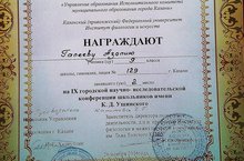 Поздравляем ученицу 9А класса Галееву Азалью - 2 место в городской НПК школьников им. К.Д.Ушинского. Учитель Капитова Ч.Г. -