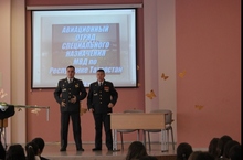 21.02.13г. В рамках воспитательного модуля "Защитники Отечества" учащихся 9-11 классов посетил авиационный отряд специального назначения МВД по Республике Татарстан. Старшеклассникам показали макеты самолетов, видеоролик и рассказали о своей работе.