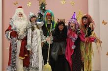 24.12.12г. Дед Мороз и Снегурочка, Петрушка и Баба яга, Леший и Кикимора показали учащимся 1-4 классов сказку "Новогодние приключения в лесу".