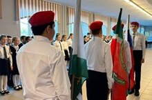 Школьная учебная неделя началась с традиционного выноса флагов Российской Федерации и Республики Татарстан.