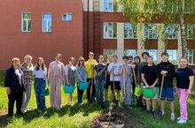 Выпускники 9-х классов сделали школе подарок: посадили на пришкольной территории яблони.