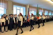 Школьная учебная неделя началась с традиционного выноса флагов Российской Федерации и Республики Татарстан.