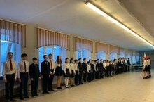 Школьная учебная неделя началась с традиционного выноса флагов Российской Федерации и Республики Татарстан.
