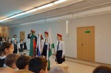 Школьная учебная неделя началась с традиционного выноса флагов Российской Федерации и Республики Татарстан.