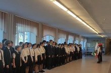 Школьная учебная неделя началась с традиционного выноса и установки флагов Российской Федерации и Республики Татарстан.Эта инициатива, которую поддержал президент В.В. Путин, была предложена представителем молодёжного детского центра "Артек".