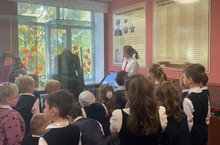 В рамках духовно-нравственного и патриотического воспитания школьников наши ученики Сирачева Камилла (8А), Шакурова Рамина и Гинанова Алия (8Л) провели интересную экскурсию по школьному музею 1Г классу. Это было первое знакомство детей с экспонатами и историческими ценностями музея.
