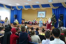 В актовом зале школы прошел новогодний праздник для детей младших классов, организованный Алешиной О.Ю. и её помощниками (ребятами из 4г и 11а кл.). Ребята пели, танцевали, читали стихи. И конечно же детей поздравили с наступающим Новым годом Дет Мороз и Снегурочка.