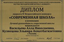 Поздравляем директора нашей школы Васильеву Аллу Николаевну и педагога - психолога Кузнецову Эльвиру Азметбагизитовну с победой в номинации "Лучший руководитель" Всероссийского конкурса "Современная школа". Желаем творческих успехов и новых побед!