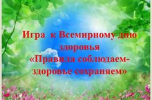 С 6.04-10.04.2015г педагог-организатор Матвеева С.В. для учащихся 4-х классов провела пятидневную игру «Правила соблюдаем – здоровье сохраняем », посвященную Всемирному дню здоровья.