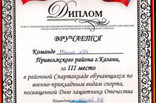 Поздравляем команду нашей школы, занявшую III место в районной Спартакиаде обучающихся по военно-прикладным видам спорта, посвященной Дню защитника Отечества. Руководитель команды - преподаватель - организатор ОБЖ Шарай Р.А.