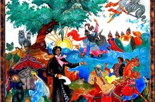 Третий день в лагере "Пушкинский день России". Сегодня ребята путешествовали по сказкам А.С. Пушкина, оформляли выставки, участвовали в конкурсе рисунков и поделок, смотрели мультфильмы по произведениям поэта.