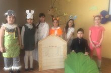 К юбилею А.Алиша учитель родного языка Камалова Л.В. и ученики 1Б класса подготовили сценку "Куян кызы".