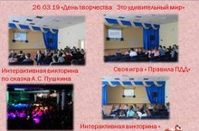 27 марта в лагере "День творчества. Волшебный мир театра". Участники смены отвечали на вопросы музыкальной викторины, проявили свои таланты в конкурсах актерского мастерства и инсценированной сказки, в конкурсе чтецов "Мои любимые стихи", а также участвовали в Веселых стартах.