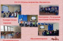 29 марта в лагере "День творчества. Мы вместе". Ребята отвечали на вопросы викторины "По родным просторам Татарстана" и "Мультивикторина", отряды соревновались в конкурсе "Песни - караоке", играли в подвижные игры ("Игры народов мира").