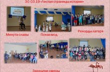 30 марта - последний день лагеря, который называется "Листая страницы истории". Сегодня ребятам были представлены модели альтернативной моды, проведен конкурс "Рекорды лагеря". В рамках закрытия смены прошла "Минута славы", а также игра "6 шариков", в которой ребята показали сплоченность и дружбу отрядов. Самые активные участники смены награждены грамотами: "Самый интеллектуальный" - 1 отряд ("Смайлики"), "Самый творческий" - 2 отряд ("Добро"), "Самый спортивный" - 3 отряд ("Чемпионы").