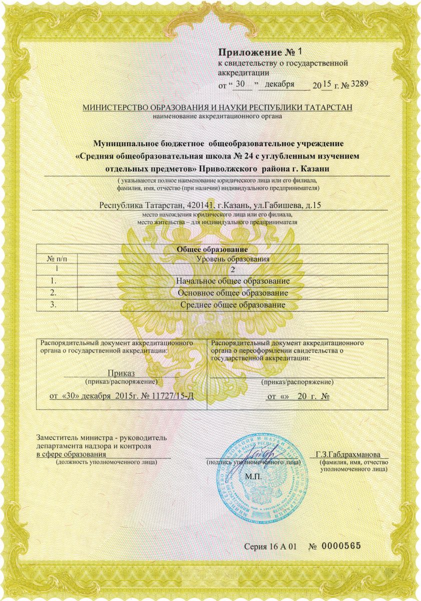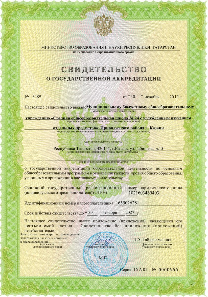 Муниципальное бюджетное общеобразовательное учреждение «Средняя общеобразовательная школа №24 с углубленным изучением отдельных предметов» Приволжского района г. Казани
