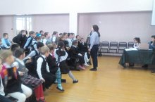 Также в ходе общения была продемонстрирована одна из возможностей психологии, а именно диагностика ведущего полушария. В качестве испытуемых выступили одна из учащихся и её мама. Дети с восторгом смотрели на "черный чемоданчик", задавали вопросы и с интересом слушали ответы.