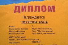 Ученица 7 класса нашей школы Чернова Анна заняла первое место в Республике Татарстан и первое место в России во всеройссийском игровом конкурсе по истории мировой художественной культуры "Золотое руно"! Поздравляем!