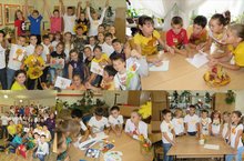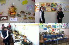 В школьной столовой можно было услышать тихую приятную музыку, продегустировать осенний салат и попить чай. Во всех рекреациях были организованы выставки детских поделок «Осень 2014 г», в фойе расположилась выставка рисунков и плакатов. Лучшие работы, конечно, в начальной школе: 1А, 1Б, 1В, 3А. 4А, 4В, 8Б и самые активные участники 1Б, 5В. Все участники праздника будут отмечены грамотами на линейке.