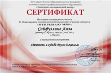 Наш ученик 11а класса, Сайфуллин Аяз, стал участником III Международного конкурса исследовательских работ учащихся и студентов «Открываю мир». Тема его работы «Личность и судьба М. Джалиля». В Республике Татарстан Мусу Джалиля знает каждый - от мала до велика, однако никто не знает, сколько строк не вышло из под пера казненного поэта. Имя величайшего татарского поэта, отца, гражданина, солдата, патриота и антифашиста - имя Мусы Джалиля на века останется в памяти тех, за кого он отдал свою жизнь. Он был высоконравственным, моральным человеком. Несомненно, большое влияние на становление его как личности, оказала семья и окружение «Бессмертен поэт, чьи песни — трепет сердца его народа», — говорил А. М. Горький. Эти слова полностью относятся и к песням Джалиля, Сила его поэзии - в неразрывной, органической связи с народом, его интересами, думами, стремлениями.