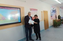 В понедельник на линейку был приглашен председатель правления Регионального благотворительного фонда им. Анжелы Вавиловой. На линейке были подведены итоги недели Добра, деньги, вырученные с благотворительной ярмарки, были переданы В В. Вавилову для детей хосписа.