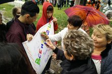 30 августа мы отмечали день рождение нашего любимого городаи заодно, в самом людном месте, в парке Горького,провели акцию в поддержку выборов, которые пройдут 13 сентября.Несмотря на дождливую погоду, настроение у всех было замечательным! -