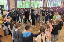 Пятый день нашего лагеря, мы после зарядки и завтрака отправились на улицу, где нас уже ждал бывший Председатель школы, который сейчас состоит в футбольной команде "Крылатые Барсы", он провел для ребят турнир по футболу. Затем после обеда у нас проходила Зарница, где ребята с удовольствием выполняли все задания. Все остались довольны!