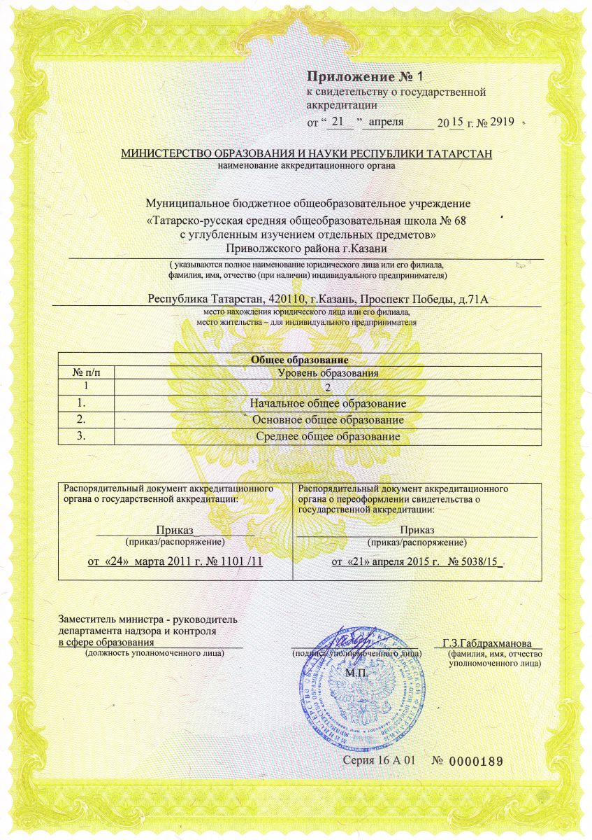 МБОУ «Татарско-русская средняя общеобразовательная школа №68 с углублённым изучением отдельных предметов» Приволжского района г. Казани