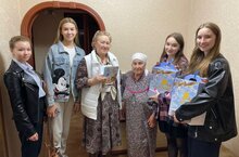 Учащиеся школы и педагоги поздравляют вдов,тружеников тыла с приближающимся праздником-Днём Победы!