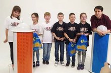 Члены отряда ЮИД на съемках телевизионной программы «Полосатая зебра»,посвящённой пропаганде правил дорожного движения.