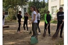 В рамках недели добра участники акции привели в порядок территорию школьного двора.