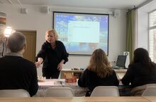 Учитель изобразительного искусства Хабирова Альбина Фаридовна провела мастер-класс по рисованию натюрморта и рассказала лицеистам о различных техниках написания картин, об истории живописи от её зарождения до нынешних времён
