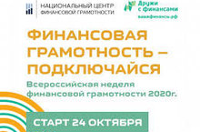 Информируем Вас о том, что в период с 24 по 31 октября 2020 года в России пройдет Всероссийская неделя финансовой грамотности 2020 г. Данное мероприятие реализуется в рамках Стратегии повышения финансовой грамотности в Российской Федерации на 2017-2023 годы при поддержке Проекта по повышению финансовой грамотности Минфина России и Всемирного банка «Содействие повышению финансовой грамотности населения и развитию финансового образования в РФ».