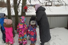 Провели с детьми беседу о зимующих птицах. Чем они питаются, где живут. Было дано задание детям совместно с родителями принести кори для птичек. На занятии сделали кормушки, а на прогулке вместе с воспитателем развесили их на деревья . положили корм и наблюдали прилетят птицы или нет. Дети очень рады что помогли птичкам.