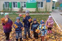 На прогулке дети наблюдали за изменениями в природе осенью. Как падают листья с деревьев. Играли в игру "С какого дерева листок". Затем провели субботник с сотрудниками и детьми, собирали листья на игровом участке.