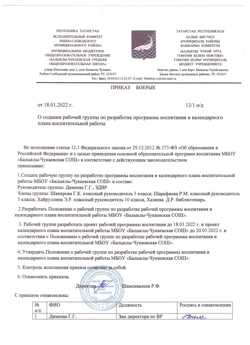Муниципальное бюджетное общеобразовательное учреждение «Балыклы-Чукаевская средняя общеобразовательная школа» Рыбно-Слободского муниципального района РТ/Татарстан Республикасы Балык Бистәсе муниципаль районы муниципаль бюджет гомуми белем учреждениесе "Балыклы-Чүкәй урта гомуми белем мәктәбе"