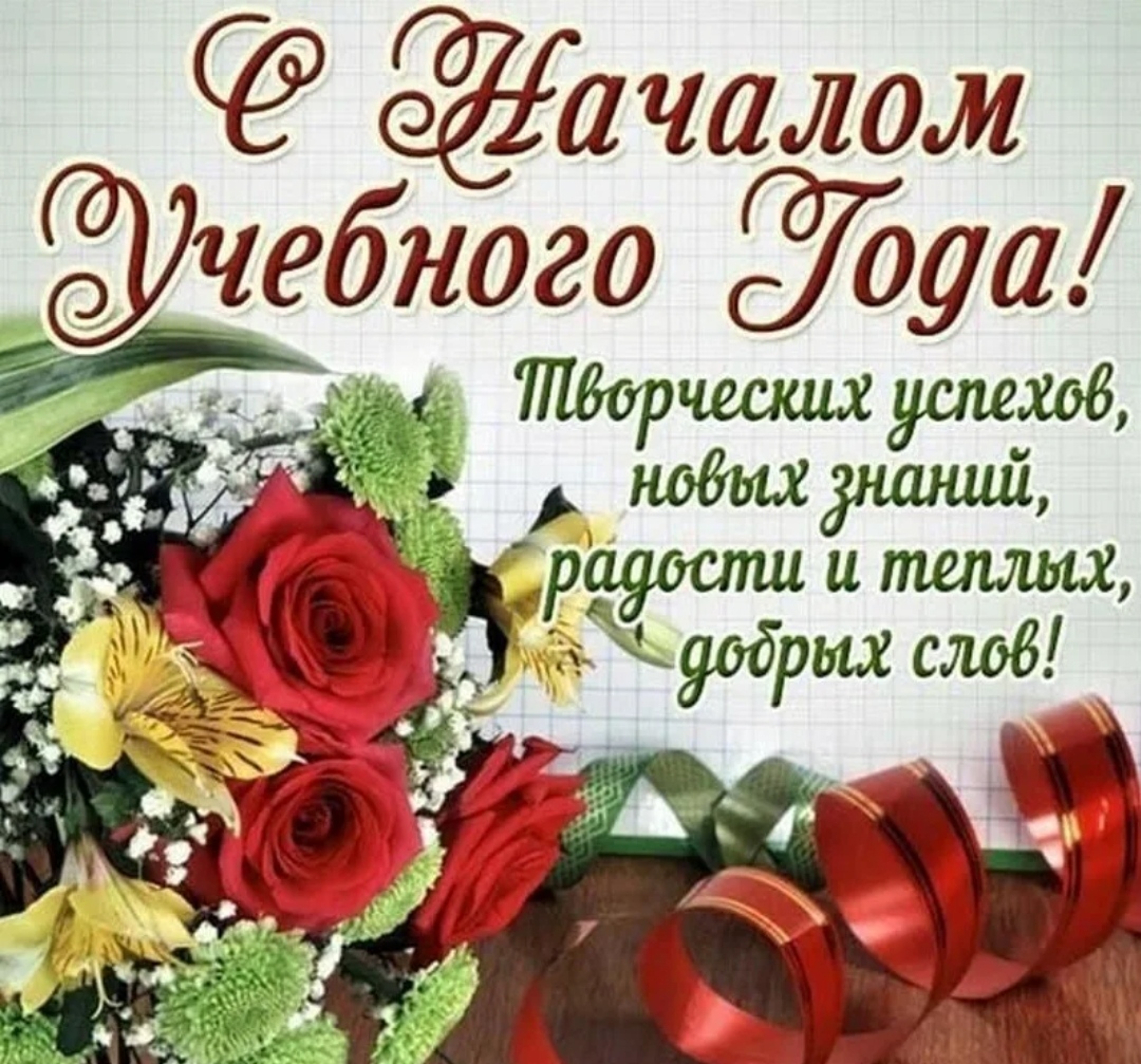 Уважаемые коллеги, поздравляем вас с новым учебным. Пусть предстоящий год будет нетрудным, но плодотворным. Желаем всем неутомимого интереса к любимой работе, большого энтузиазма и прекрасного настроения души. Желаем уважения и увлечённости со стороны наших воспитанников. Всем успешного старта в новый учебный год.