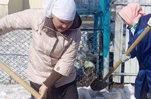 Балалар бакчасы территориясен кардан чистарту/Средник по очистке территории от снега 13.04.2022