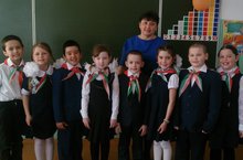 12 апрель - Космонавтика көнне Ю.Гагарин исемендәге дружинабызның 1 нче сыйныф укучыларын "Эзтабарлар" сафларына кабул иттек. Алар чын эзтабар булырга һәм эзтабар кагыйдәләрен төгәл үтәргә сүз бирделәр.