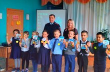 Сегодня в рамках проведения профилактической недели по безопасности дорожного движения, который проходит с 24 сентября по 28 сентября 2018 года, в нашей школе прошла встреча с майором полиции, начальником ГИБДД по Рыбно-Слободскому муниципальному району Исмагиловым А.Р. и начальником отдела профилактики ГБУ "БДД" ТУ города Казани по Рыбно-Слободскому муниципальному району Егоровой Т.А. Гости провели беседу с учащимися 1-5 классов, показали фильм, вручили блокноты, световозвращающие значки и первоклассникам удостоверение пешехода.
