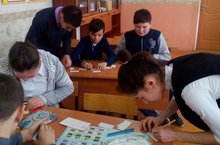 Во время внеурочной деятельности, под руководством учителя географии Хуснутдиновой Л.Р. учащиеся 6 класса делают топографическое домино.
