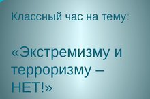 Сентябрь ае-укучылар өчен уку елының башы. Шулай ук сентябрь-экстремизмга һәм терроризмга каршы көрәш айлыгы буларак билгеле. 8 нче сентябрь көнне 6 нчы класс укучылары белән “ Экстремизм белән терроризмга-юк!” дип исемләнгән класс сәгатен класс җитәкчеләре Нәйсә Флюровна үткәрде.Класс сәгатенең барышында террористик оешмалар, аларның канкойгыч эшчәнлекләре һәм алар белән көрәш чаралары турында аңлатылды һәм күрсәтелде.