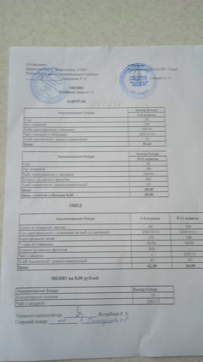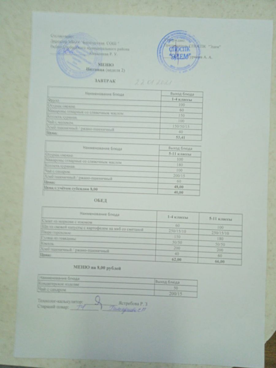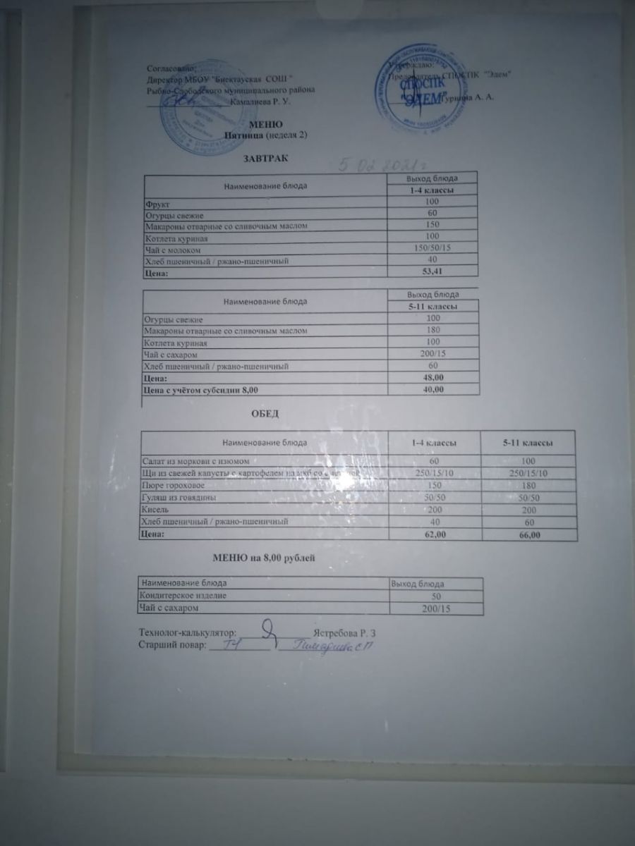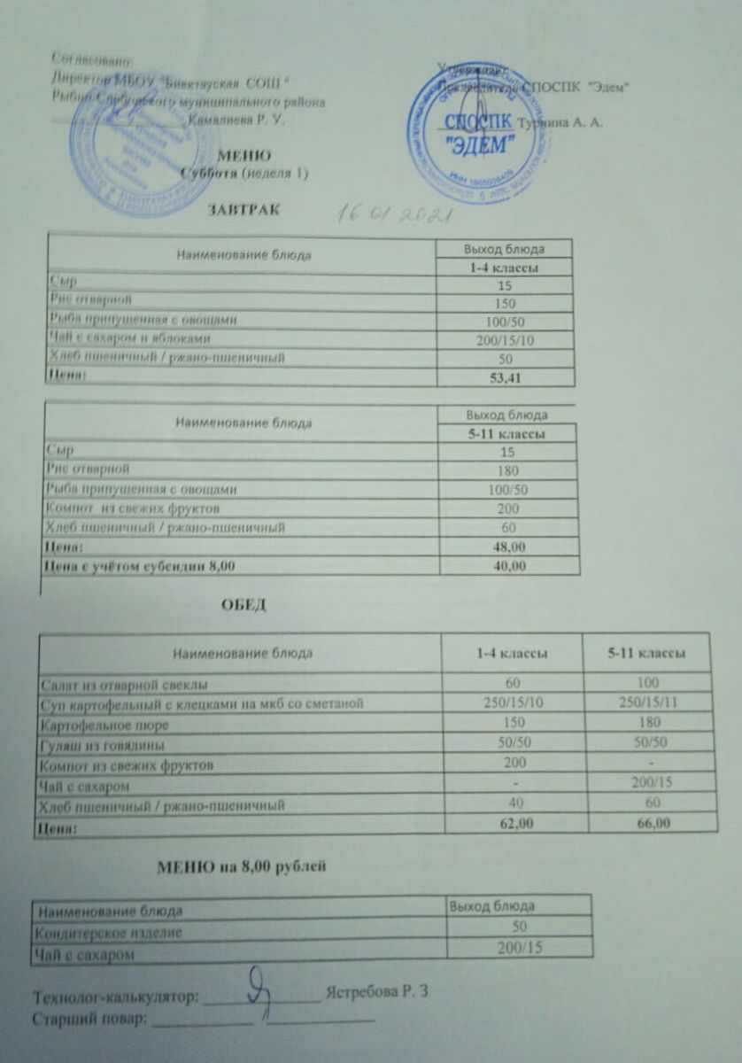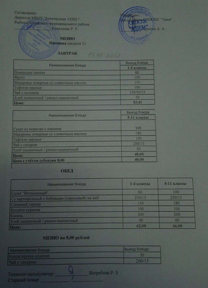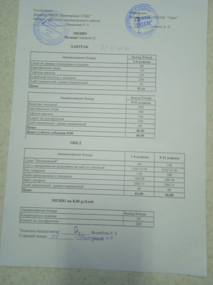 Примерное двухнедельное меню для 5-11 кл 2 полугодие