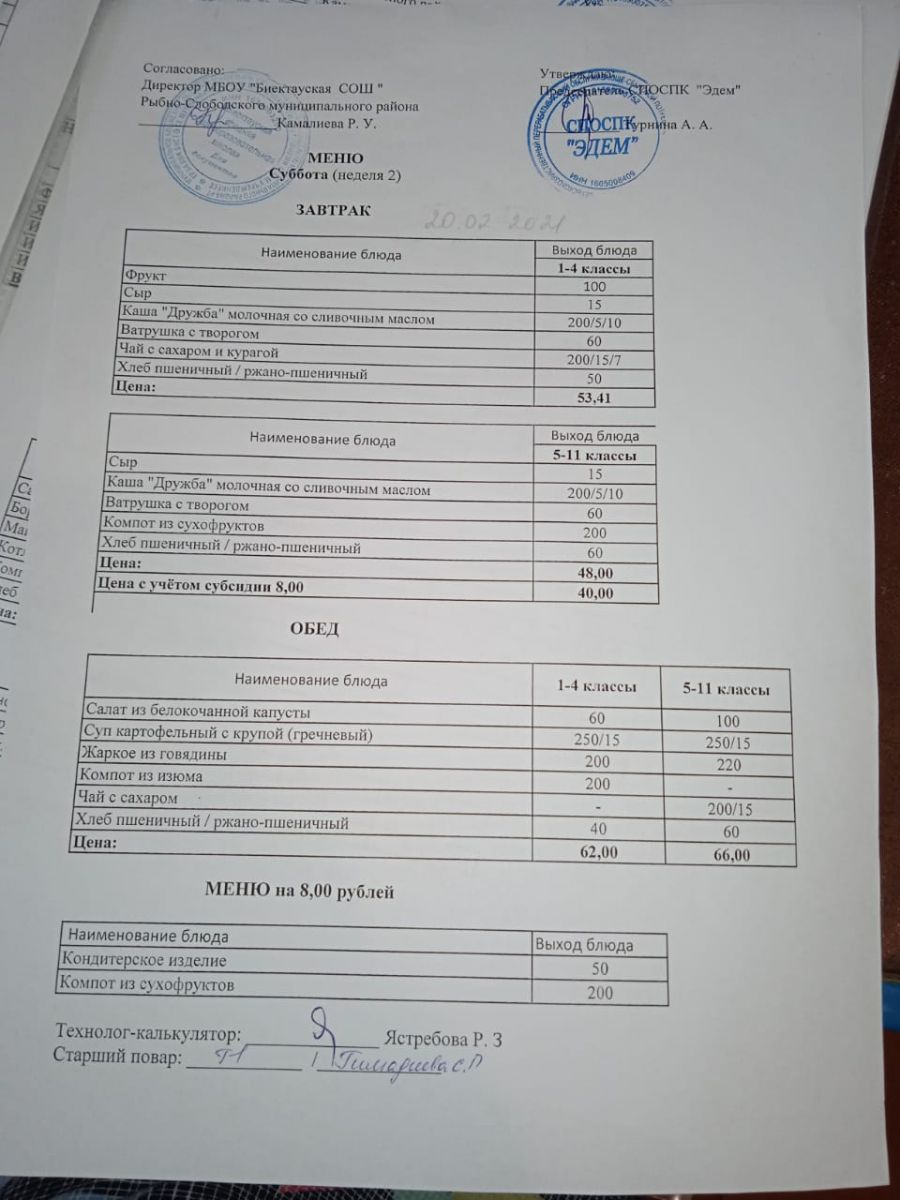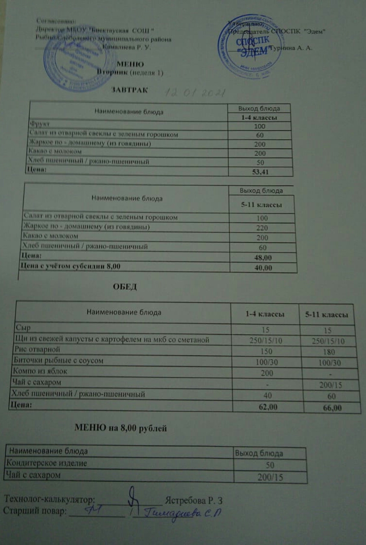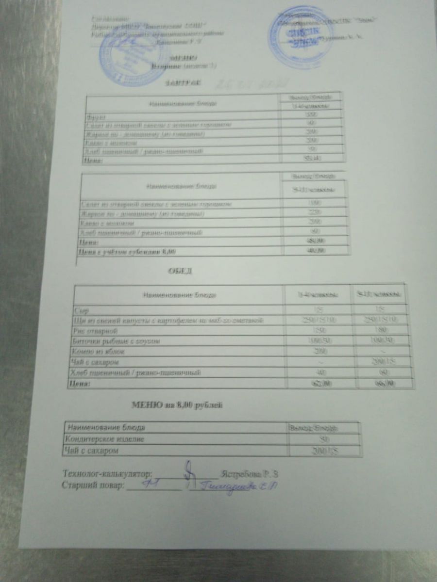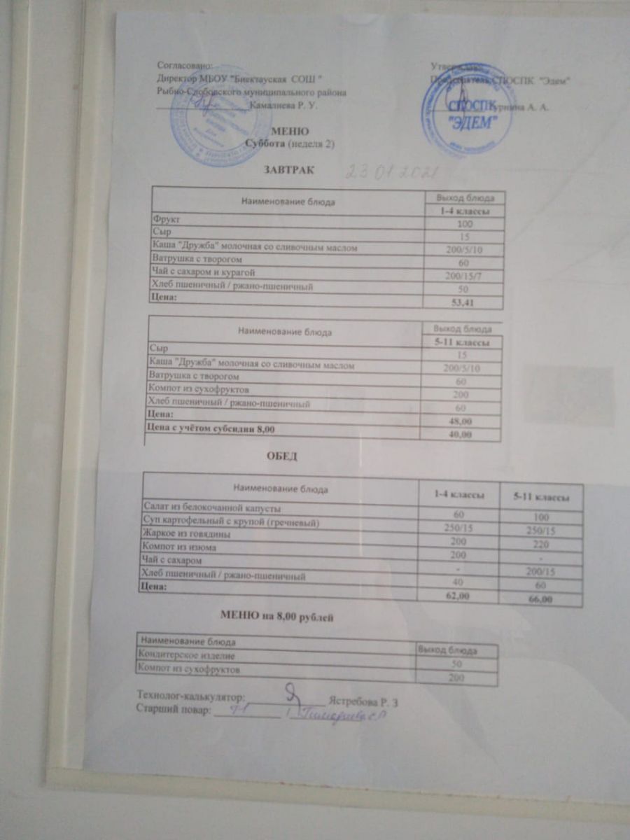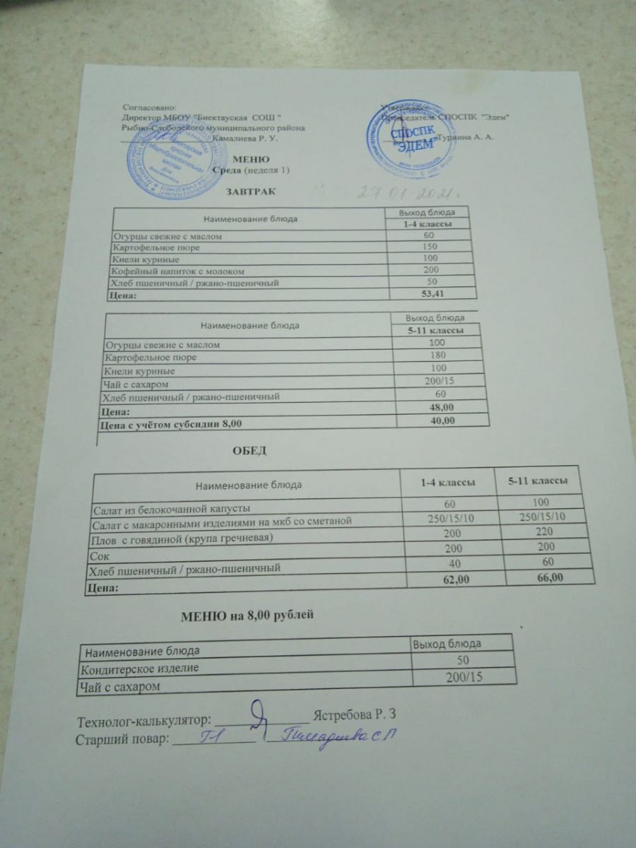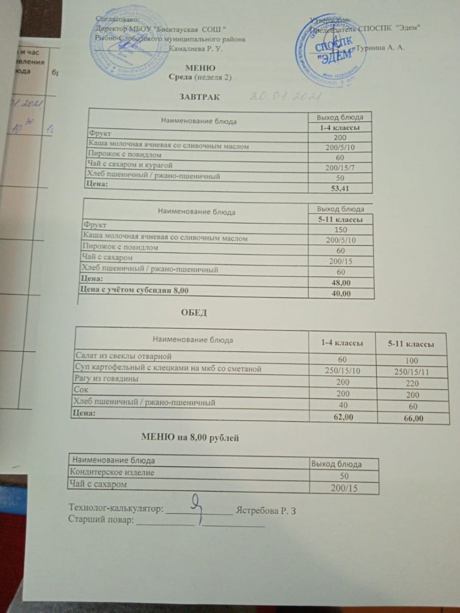 Примерное двухнедельное меню для 5-11 кл 2 полугодие