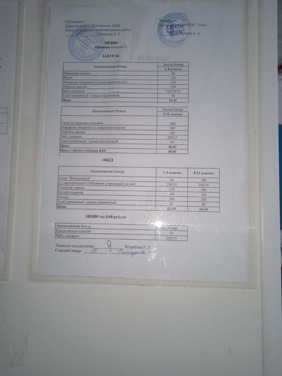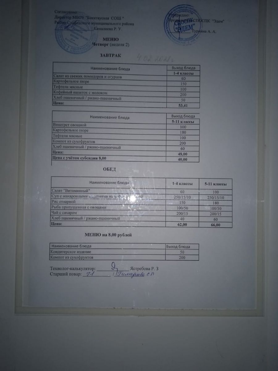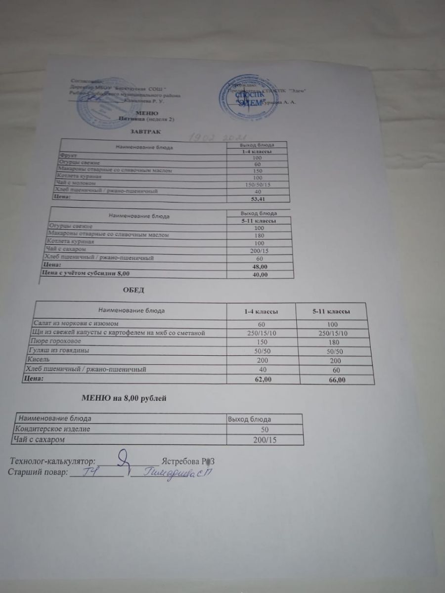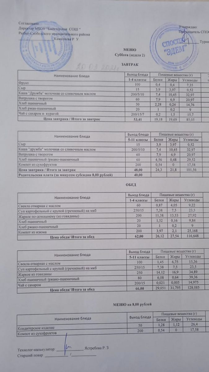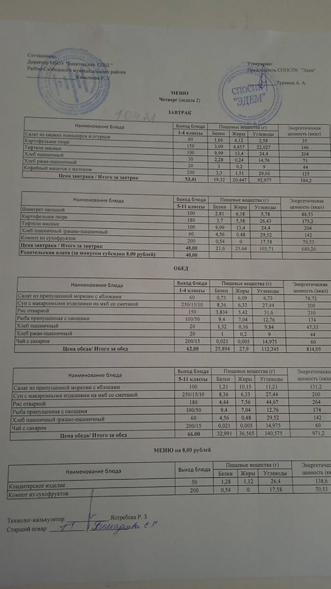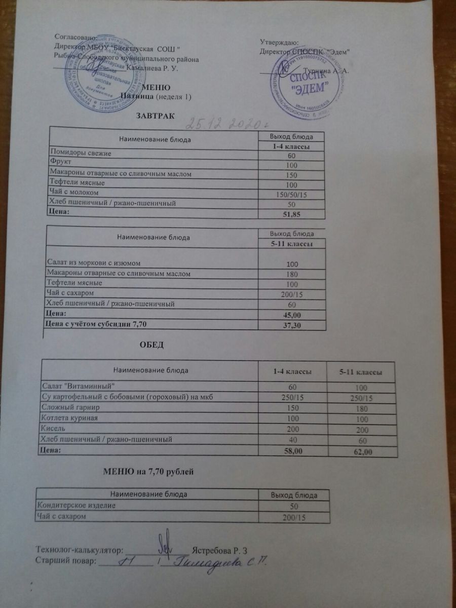 Примерное двухнедельное меню для 5-11 кл 2 полугодие