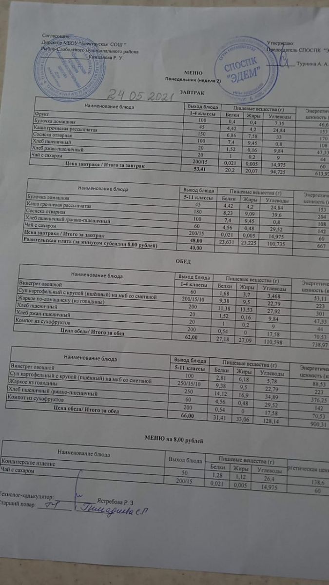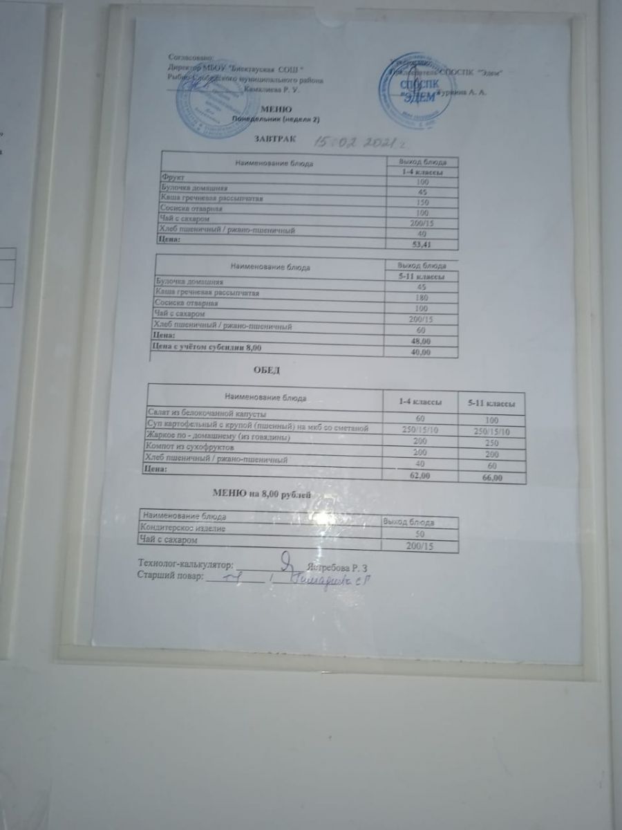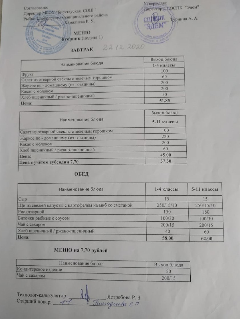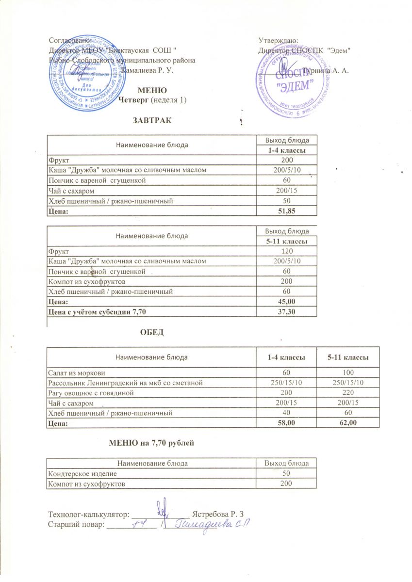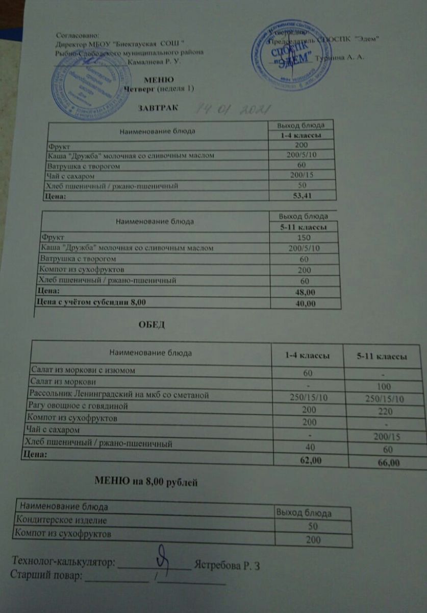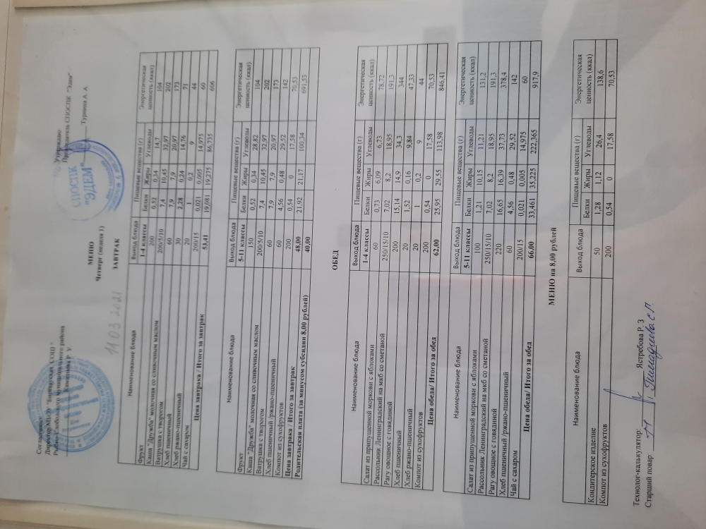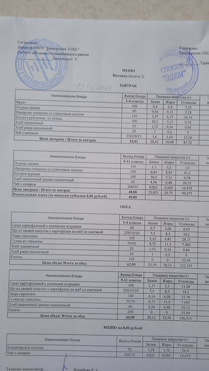 Примерное двухнедельное меню для 5-11 кл 2 полугодие