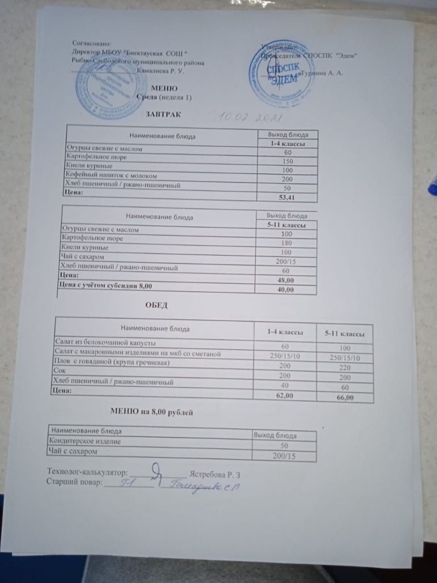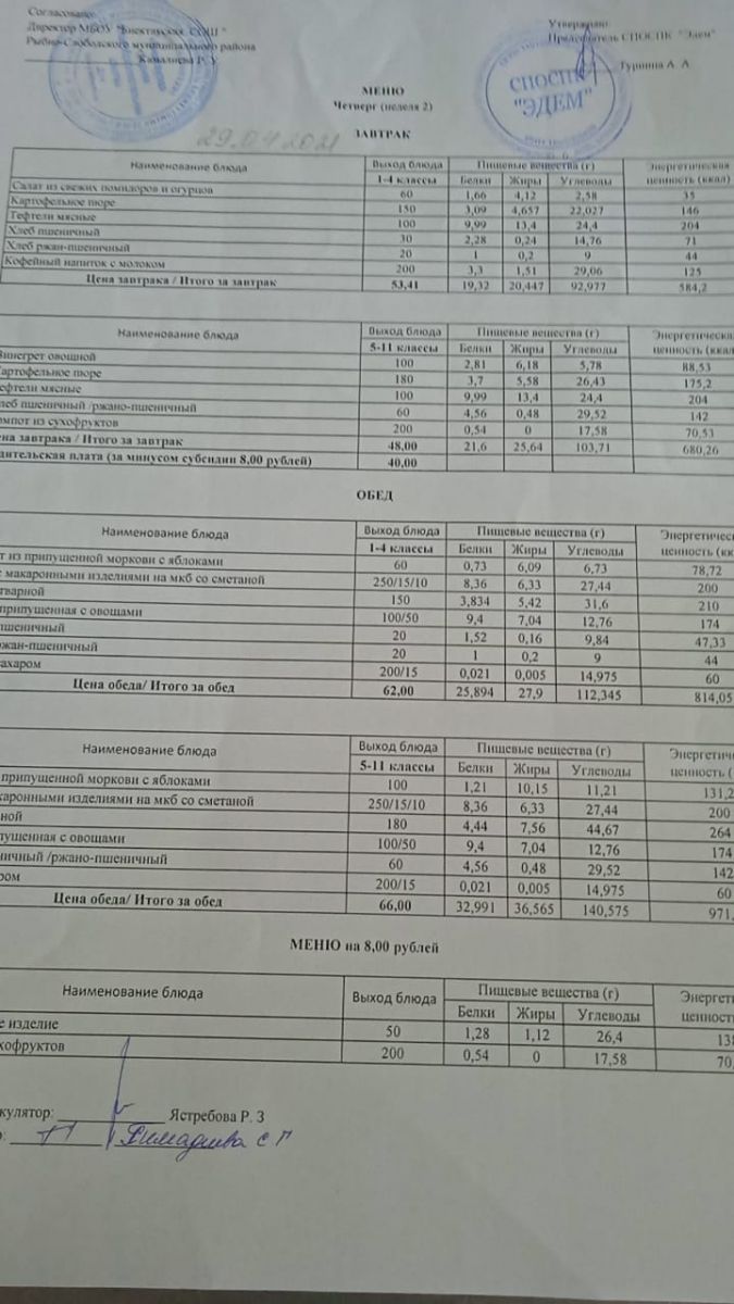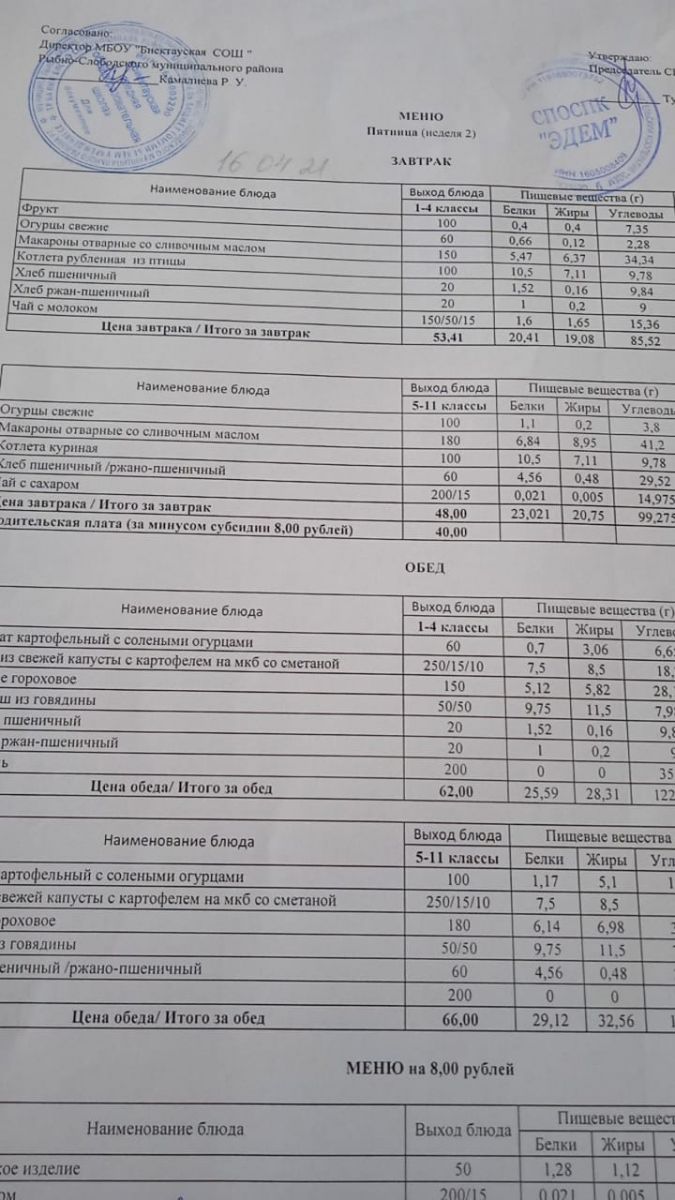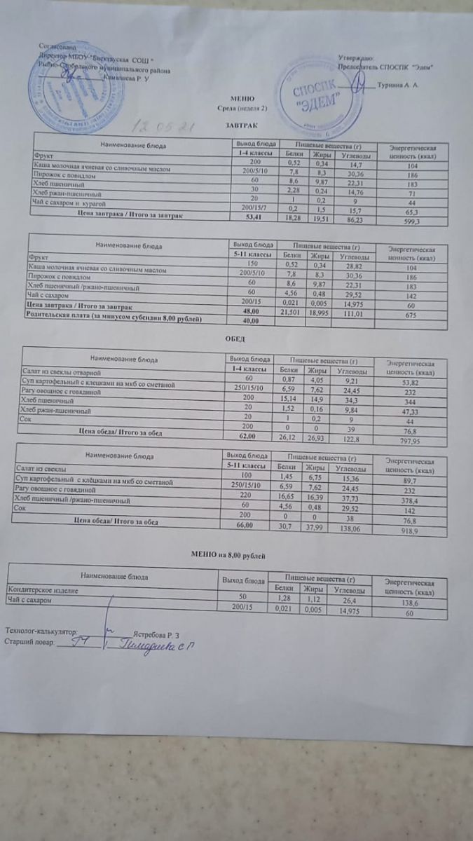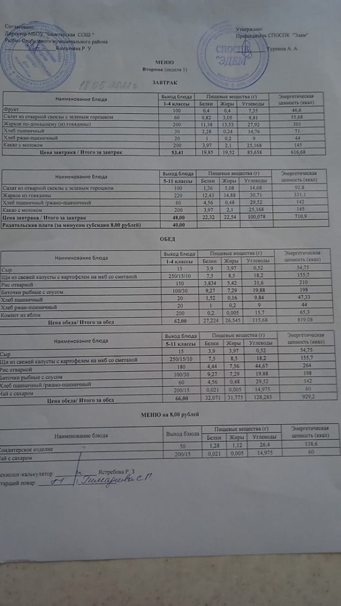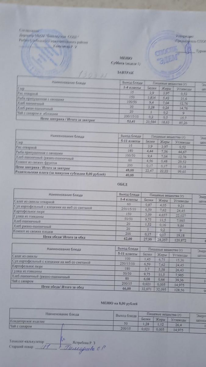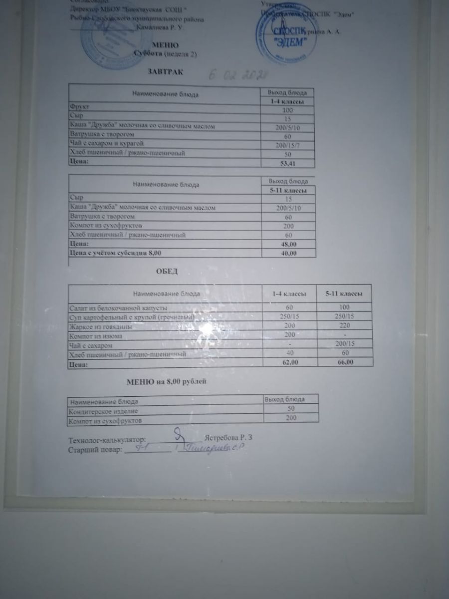 Примерное двухнедельное меню для 5-11 кл 2 полугодие
